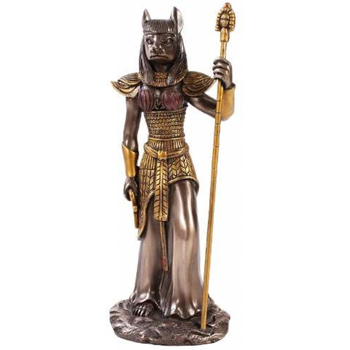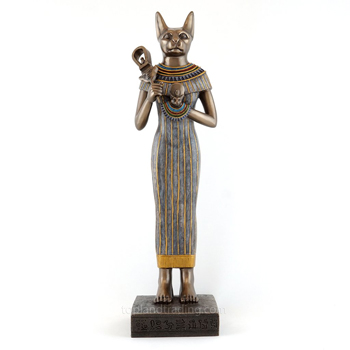 Bastet was depicted as a slender woman having the head of a domestic cat. She was daughter of Sun God Ra, for whom she fought with dreadful enemy of light, Apep. She is often depicted holding a sistrum, which was popular musical instrument at these time, possibly showing her role as a goddess of dance.